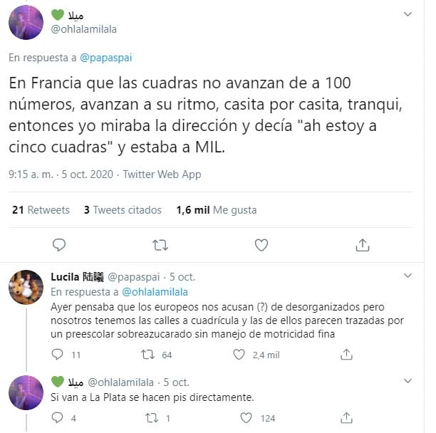 El punto de partida fue el mensaje de @papaspai, que abrió el juego con una anécdota de la época en que estudiaba en Virginia (Estados Unidos). Luego siguieron historias inesperadas. Desde la forma de numerar las calles hasta los horarios de las comidas, pasando por alquileres y "ciencias" como por ejemplo servir el té, fueron algunas de las respuestas destacadas.