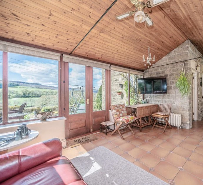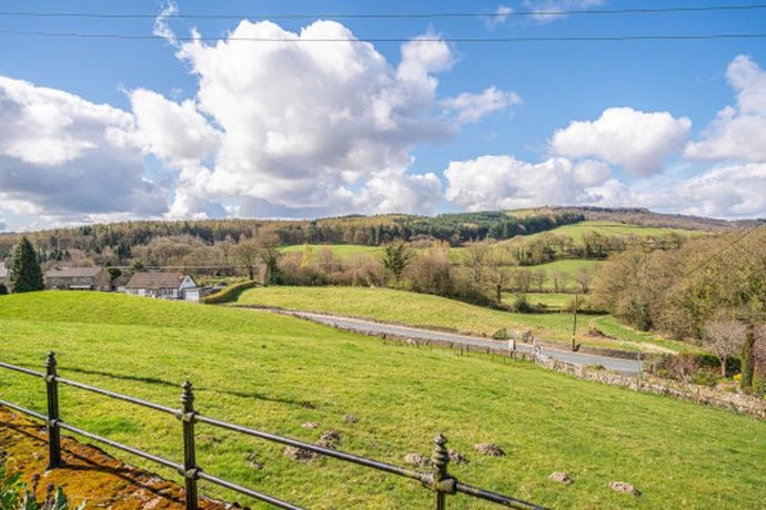 El hall de ingreso al inmueble tiene una escalera que conduce a un solárium, que se abre a una terraza elevada de la que se puede ver el bello paisaje del valle de Nidderdale, caracterizado por el terreno irregular y la variedad de verdes.