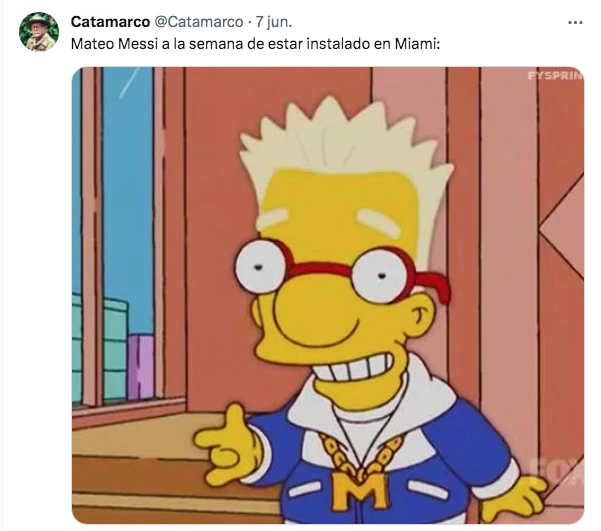 La mayoría de los usuarios apuntaron a los cambios de vida que podría tener la familia Messi en su desembarco en La Florida. Por eso no sólo bromearon con el estrés que podría tener Antonela Roccuzzo a la hora de una mudanza y la evolución de los looks de Lionel y su hijo Mateo, a quien se lo imaginaron influido por la cultura urbana del lugar, con cadenas y hasta el pelo platinado. También se multiplicaron los chistes en los que los tuiteros se imaginaban cómo será la pronunciación del inglés por parte del rosarino.
