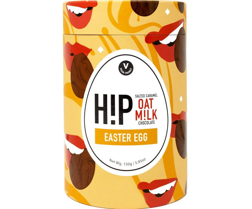 La nueva marca vegana HiP (Happiness in Plants) de James Cadbury ofrece una alternativa cremosa a base de avena al tradicional chocolate con leche, con un 35% menos de azúcar. Para la Pascua, ofrecen un chocolate con leche de avena con sal marina y huevo de caramelo.