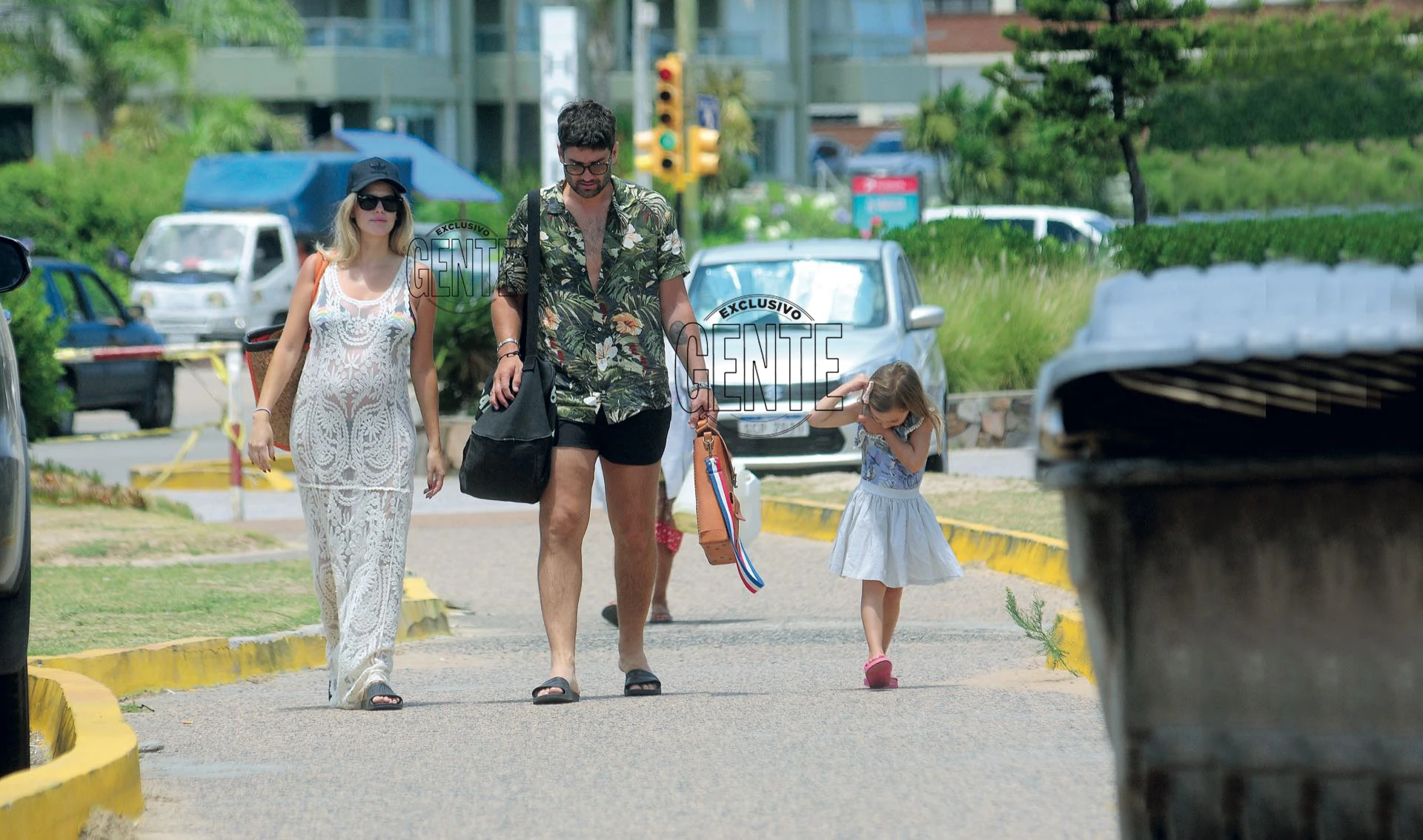 La modelo de Multitalent, que espera a su segunda hija para abril, pasea por las playas uruguayas junto a su marido, Meme Bouquet, y su pequeña, Mila, quien está “copada con su hermanita”.