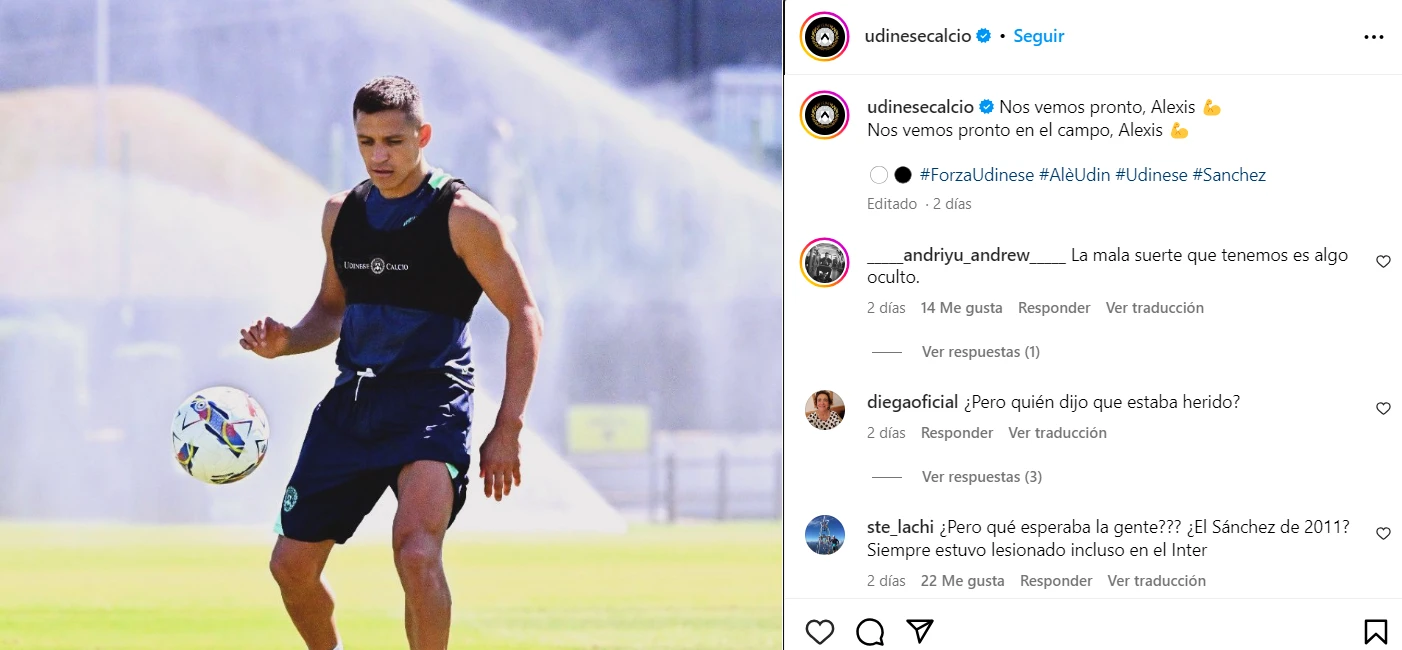 El reestreno de Alexis Sánchez junto a Udinese, el club italiano en el que juega, tendrá que seguir esperando. Este miércoles el club informó que el delantero nacional sufrió una lesión en el entrenamiento con el conjunto italiano, por lo que tuvo que realizarse los exámenes correspondientes para saber el estado actual del delantero.