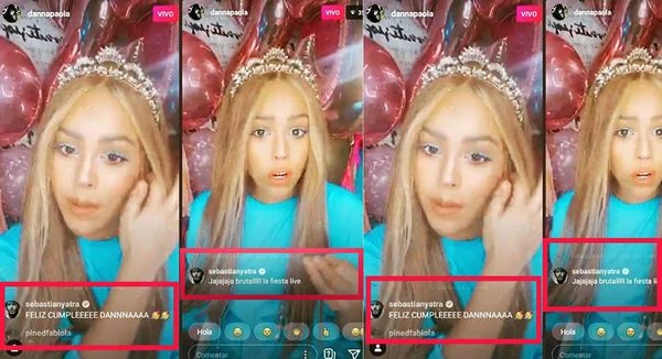 Recientemente la actriz, conocida por su actuación en Elite, celebró sus 25 años mediante un vivo desde su Instagram. en el cual recibió el saludó del cantante: “Brutal la fiesta live”, escribió el intérprete de Un año. “Gracias Sebas, gracias”, respondió Danna.