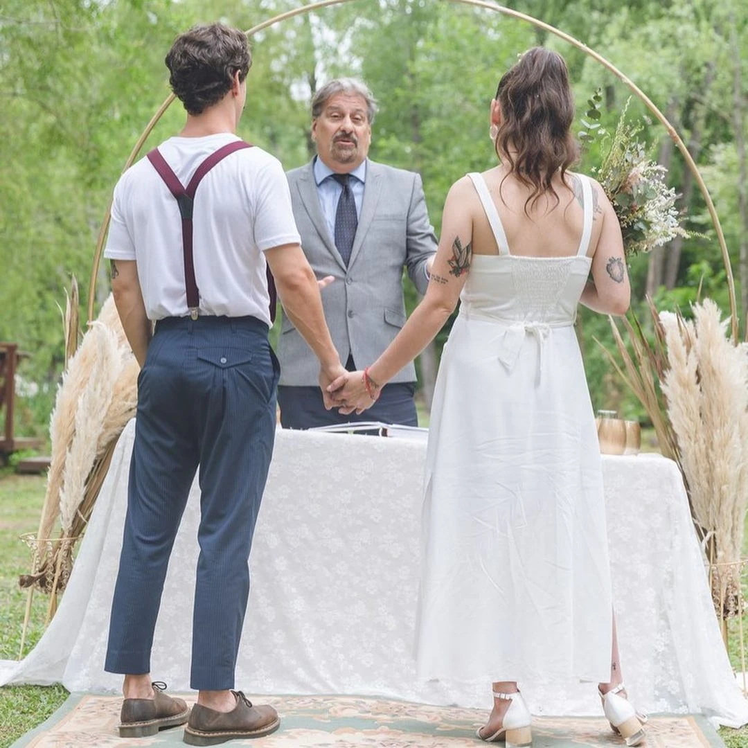 "Finalmente, nuestra idea fue similar a lo que hicimos, pero con menos invitados y servicios. En principio queríamos hacer un casamiento al aire libre, con una carpa y disc-jockey, pero por la pandemia pospusimos ese plan para fin del año que viene. Mientras tanto, aprovechando que se habilitaron los casamientos por Civil, decidimos casarnos y armar una celebración acotada, al aire libre, sólo con los testigos y nuestras familias", contó Juana días atrás.