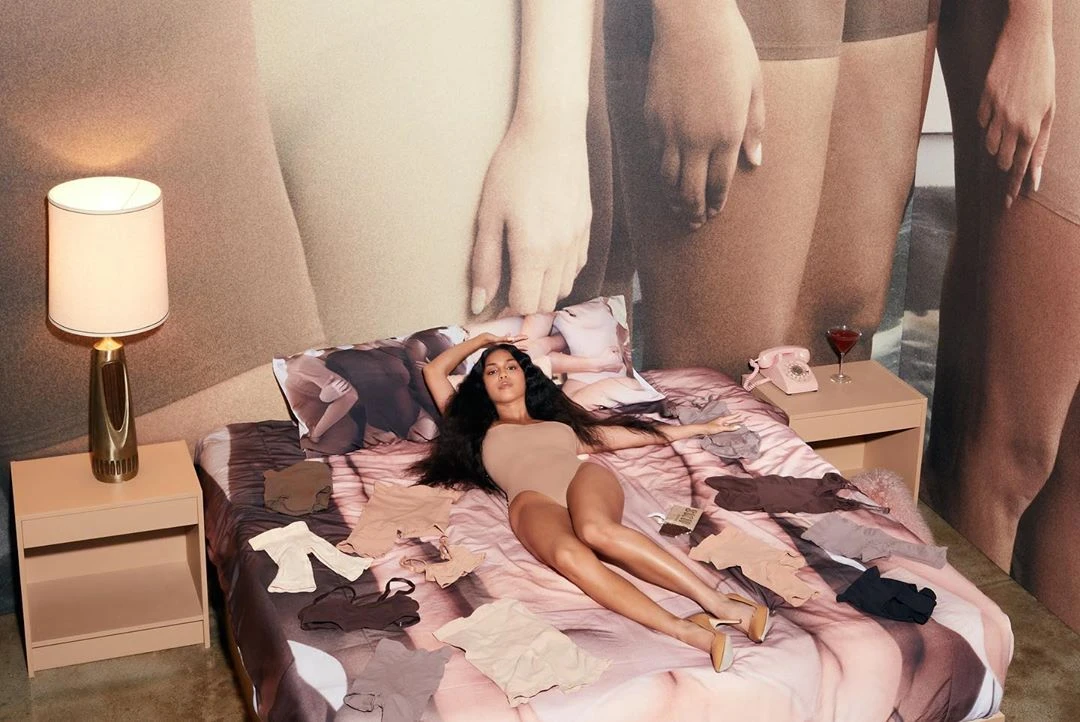 Fotografiada por Vanessa Beecroft, la más famosa del clan posó con algunas de las piezas de underwear en sets revestidos –del piso al techo– con fotos compartidas por sus clientas en las redes sociales luciendo sus ítems modeladores.