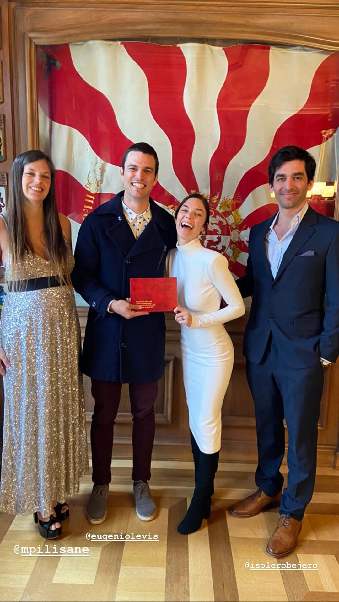 La pareja se casó ante la presencia de sus amigos y testigos Mary Emmet e Ignacio Soler Obejero, que retrataron el momento que luego la novia compartió en sus redes sociales.