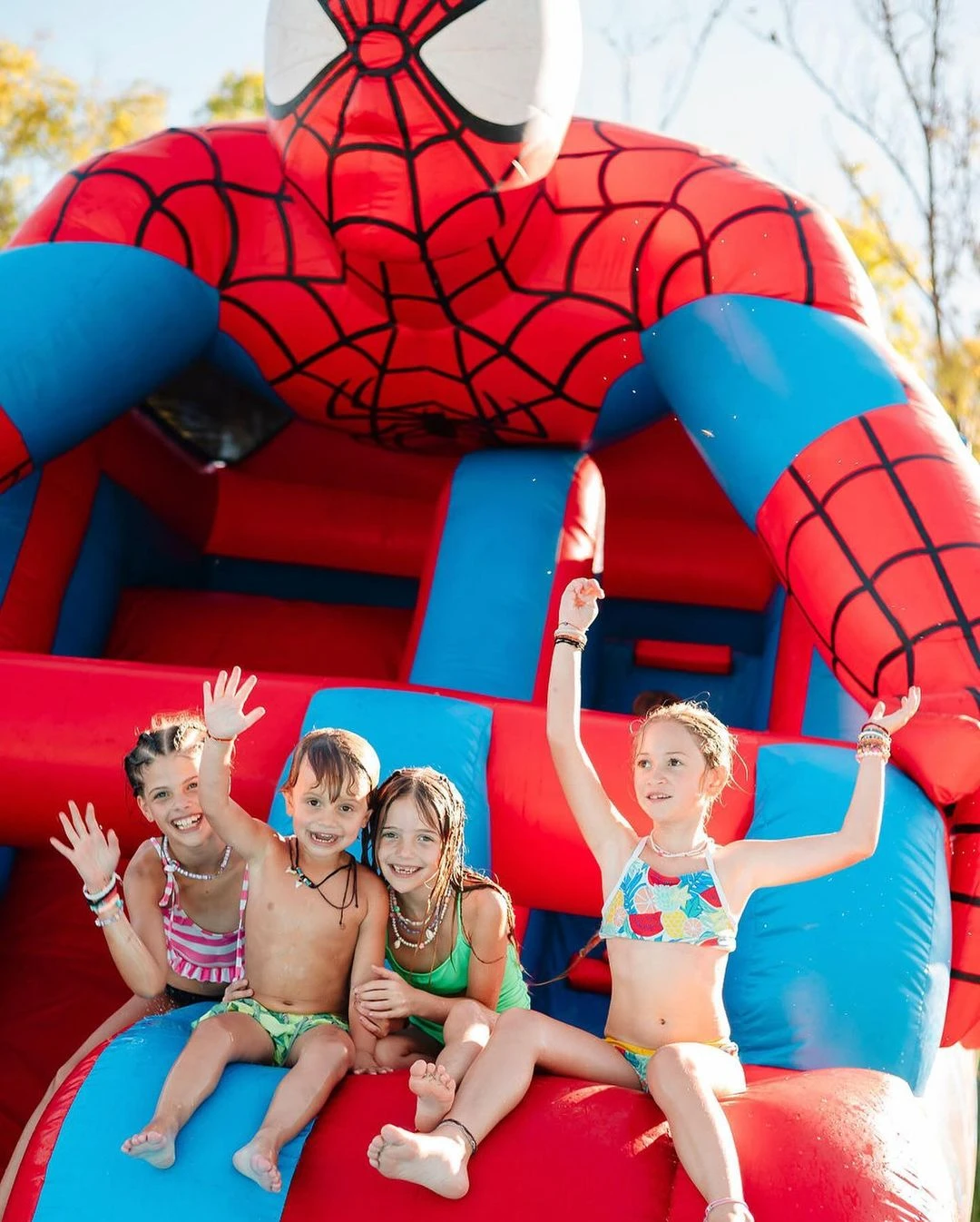 Una de las fotos más tiernas de todo el carrete compartido por Zaira Nara fue la de los más chicos del clan Nara juntos. Isabella, Francesca, Viggo y Malaika postaron juntos en traje de baño desde la altura de un gran inflable de Spiderman.