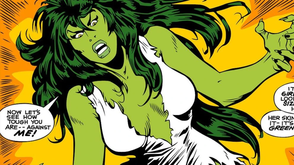 La mujer verde es la abogada Jennifer Walters, que resulta ser prima de Bruce Banner, Hulk. Si bien Banner sufre de una mutación a causa de la exposición a rayos gamma, no ocurre lo mismo con su prima, que adquiere sus superpoderes luego de una transfusión de emergencia. A diferencia de su primo, su inteligencia y personalidad no se ven afectados cuando se transforma.