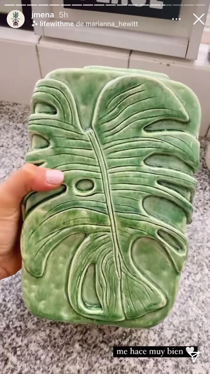 "Fuera de joda, con el tema de la ansiedad este nuevo arte me ayudó muchísimo", reconoció Jimena antes de presentar su "master piece" (en español, "obra maestra"): un velador con una enrome hoja verde en el frente.