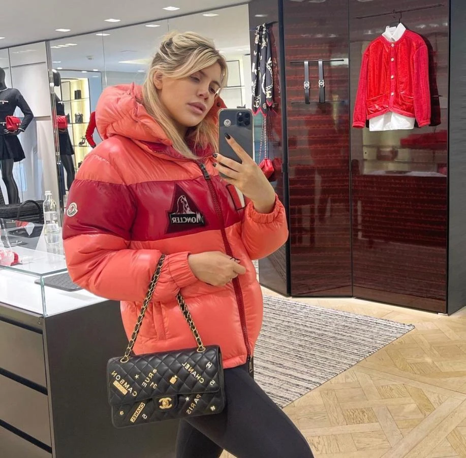 Se trata de una variante del modelo Cambon que figura en la tienda digital a más de 5000 euros, y que Wanda eligió lucir con unas leggings y campera inflada by Moncler.