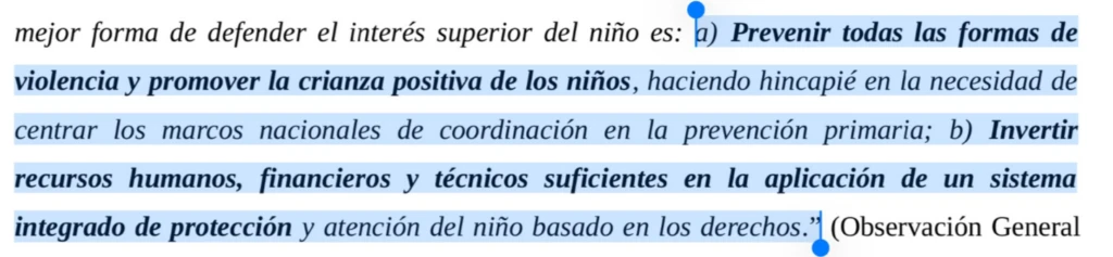 Por último, De Brito compartió otra captura en la que se puede leer que la mejor forma de defender el interés del niño es "prevenir todas las formas de violencia y promover la crianza positiva de los niños...".