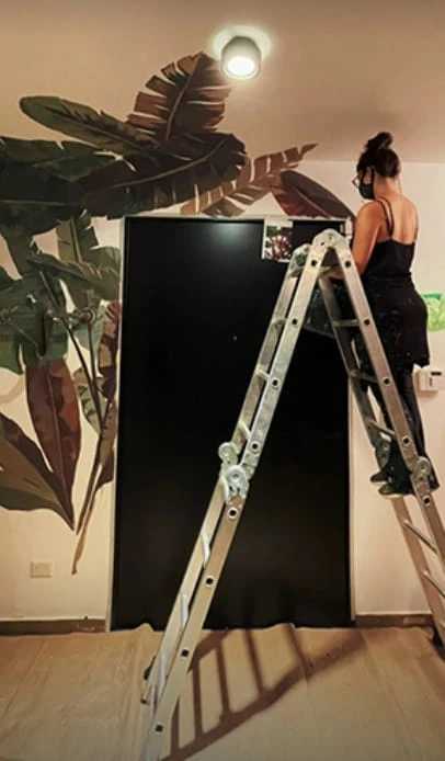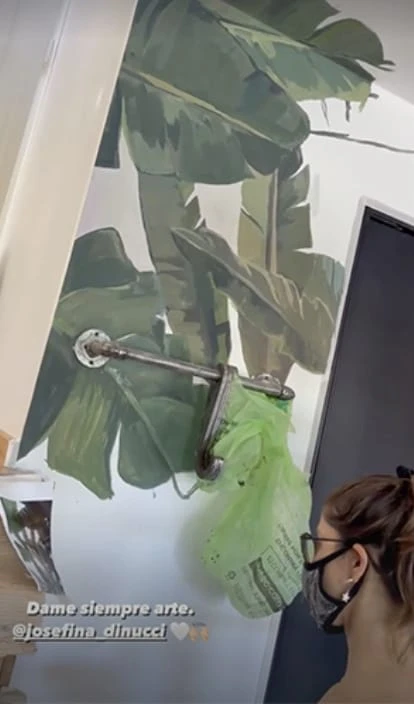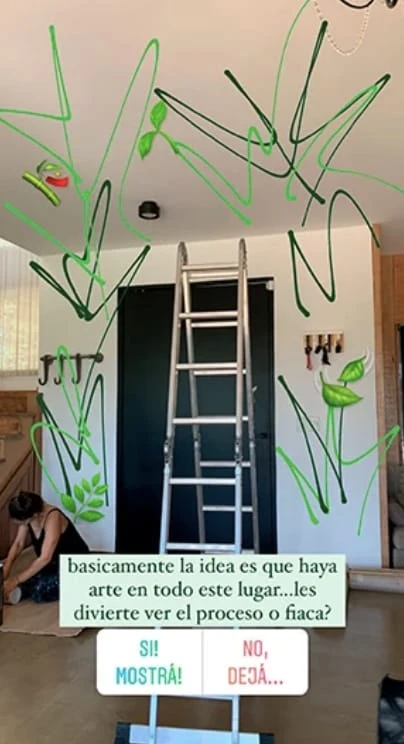 Compenetrada con este desafío, Gimena empezó con otro complejo desafío y decidió compartir parte del material con sus fanáticos. Con ganas de ver un gran mural en la puerta de entrada de su casa, decidió contratar a una artista para que la ayude, no solo con un consejo, sino con llevar adelante el mural.