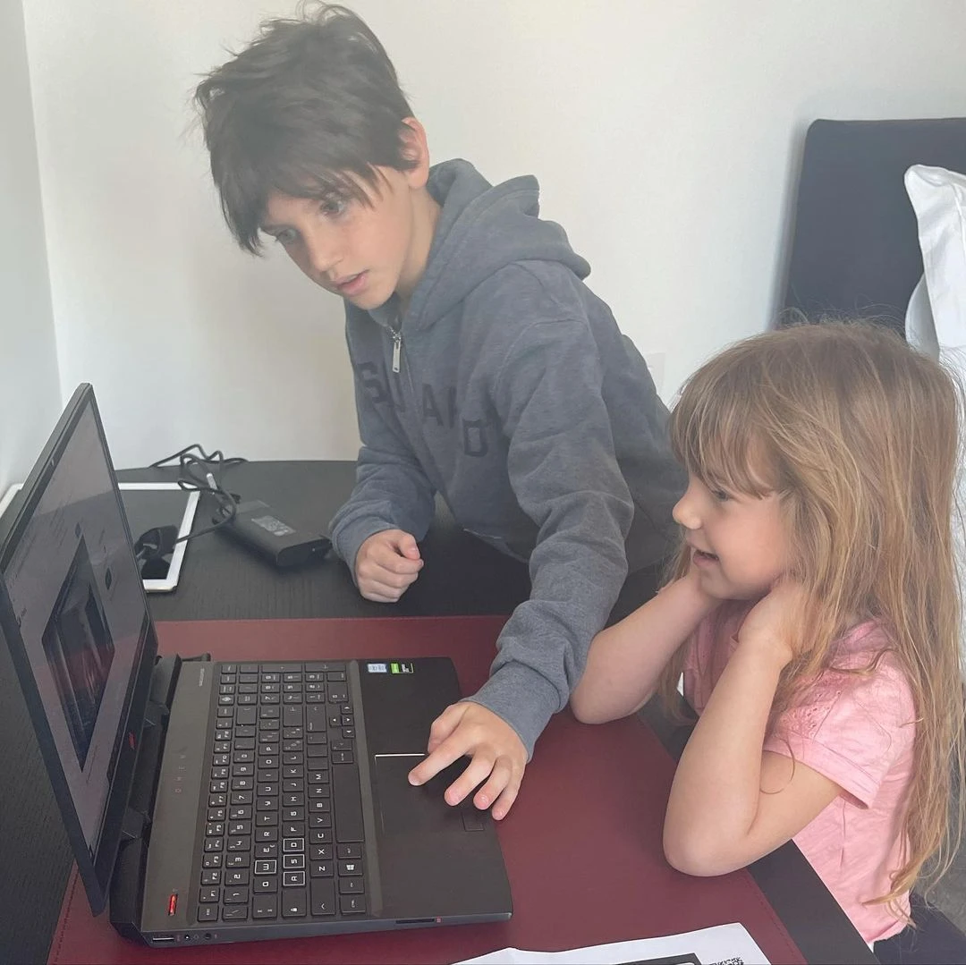Viendo a sus herederos conectados a sus computadoras, la empresaria e influencer reflexionó: "Y detrás de ellos me encuentro yo, sin tiempo de peinarme ni de cambiarme desde las 8 am hasta que terminan sus clases online...".