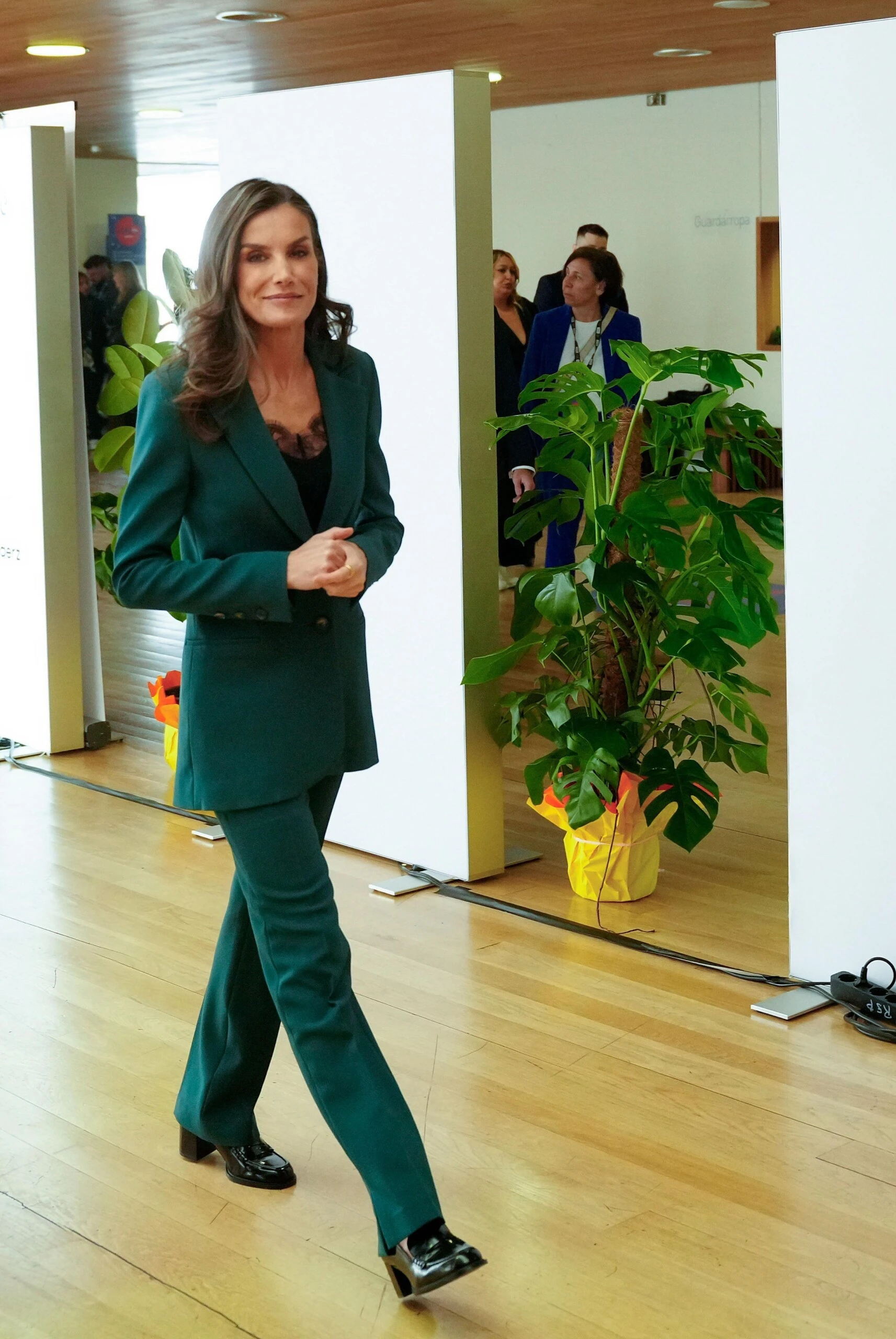 En tanto, la reina de España, Letizia Ortiz, sorprendió este viernes en una ceremonia del calendario de distinciones de los Princesa de Girona, con un look sastrero en clave lencero. Un dos piezas en color verde oscuro, cuya prenda estrella fue un blusa de tipo camisero debajo, algo que aportó modernismo y frescura a su estilo.