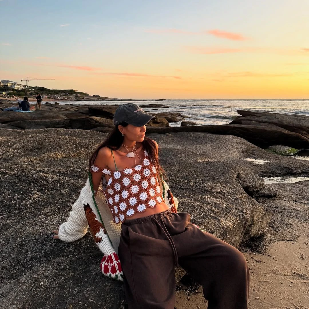 Ya sea luciendo blusas o crop tops a crochet o trajes de baño del mismo estilo, la modelo argentina viene desplegando una serie de looks a base de tejidos de punto que los expertos en moda ya vaticinan que predominarán en las pasarelas internacionales.