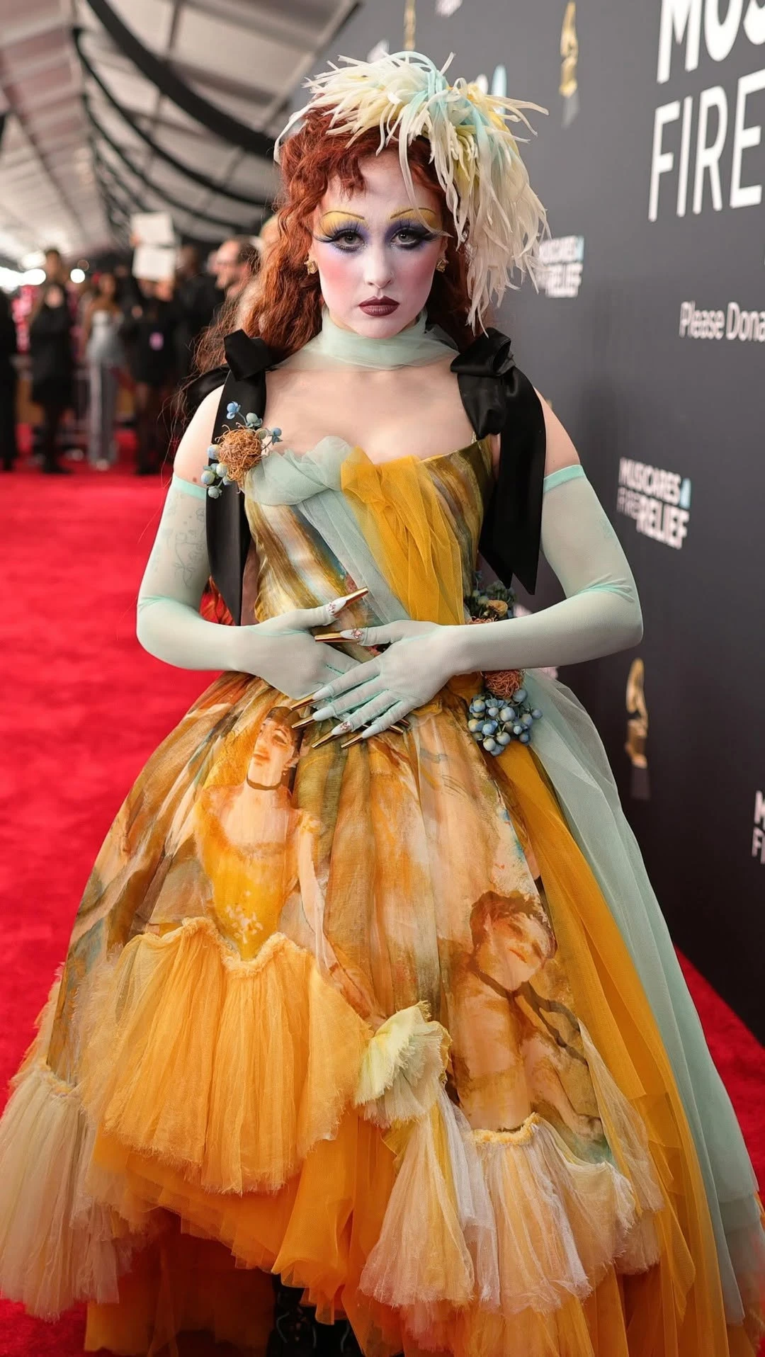 Por su parte, la naciente estrella pop, Chappell Roan, se decantó por el balletcore. Para su primera aparición en los Grammys, la ganadora del premio a Mejor artista nuevo eligió una versión en tul del famoso cuadro de Edgar Degas Bailarina con ramo: uno de los looks finales de la colección de Alta Costura de Primavera-Verano de 2003 de Jean Paul Gaultier.