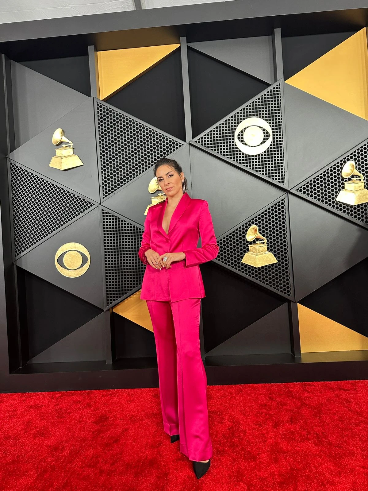 La periodista Eleonora Pérez Caressi fue la única representante argentina en los Grammy 2025. Lució un elegante traje sastrero confeccionado en un exclusivo crepé suizo fucsia, con un diseño sofisticado que combina impecable estructura y estilo vibrante de la diseñadora argentina Claudia Arce.