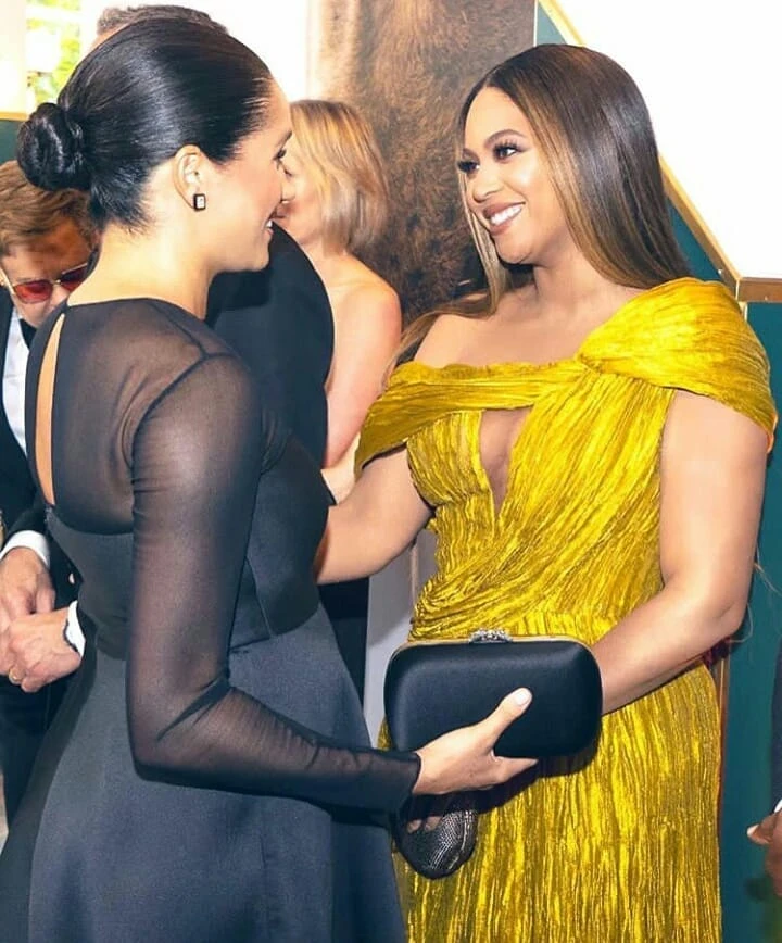 El duque y la duquesa de Sussex caminaron por la alfombra roja en el estreno en Londres de "El Rey León" en julio de 2019, donde saludaron a una de las personas más poderosas de Hollywood, el CEO de Disney, Bob Iger.
