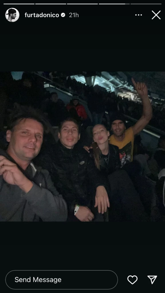 El actor aprovechó que su novia española estaba en Argentina y la invitó a ver a la banda oriunda de Mataderos. Asimismo, Furtado no se privó de nada, y también le mostró a la española cómo es una previa 'argenta': tomaron fernet con cola en una botella cortada, que la actriz rápidamente compartió en sus redes sociales.