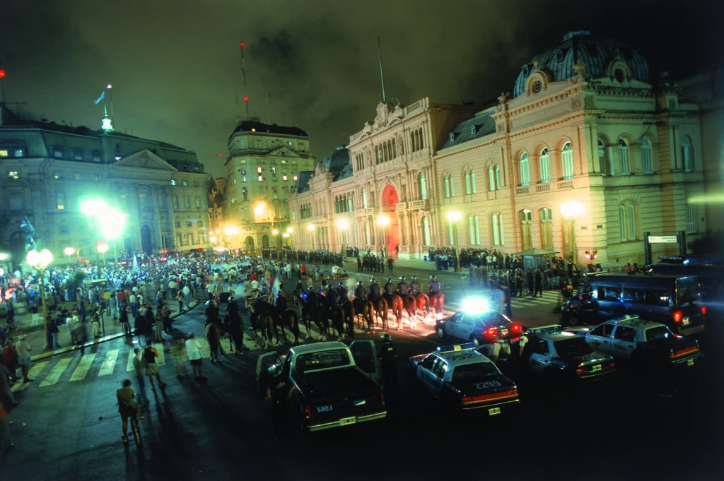 Cuando Fernando de la Rúa se subió al helicóptero para dejar la Casa Rosada a las 19.50 del jueves 20 de diciembre de 2001 una multitud que ya sabía de su renuncia presenció desde la Plaza de Mayo la escena que siguió luego, el Sikorsky S76B blanco de la Presidencia que despegaba de la terraza y se retiraba hacia el norte. Así, los manifestantes veían con certeza un acontecimiento histórico y la postal que trasciende y atormenta a todos los gobiernos argentinos de los últimos años.