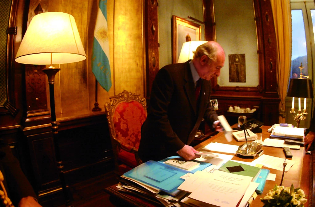 De la Rúa fingió desalojar su escritorio sin mirar a la cámara y luego pidió: "Mándeme una copia. La quiero de recuerdo", detalló el fotógrafo sobre cómo fueron los últimos minutos mientras el expresidente redactaba la renuncia que enviaría luego al Parlamento.