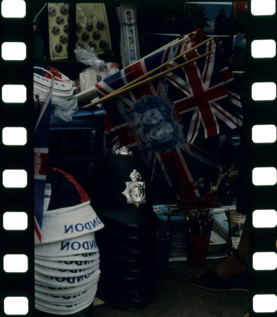 Los fenicios del merchandising se apropiaron de todo objeto visible y remeras, bolsos, tazas, percheros, copas, platos, portarretratos, banderas, relojes, monedas, llaveros, binoculares, pulseras y pines se podían comprar en cualquier esquina, por entre una y diez libras. Y se consumía todo.