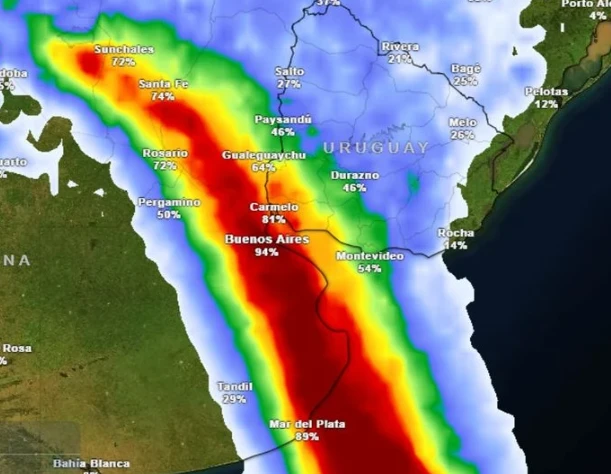 En esa franja se prevé una situación meteorológica compleja, con precipitaciones abundantes en períodos cortos y acumulados que en algunos puntos podrían superar los 150 milímetros.
