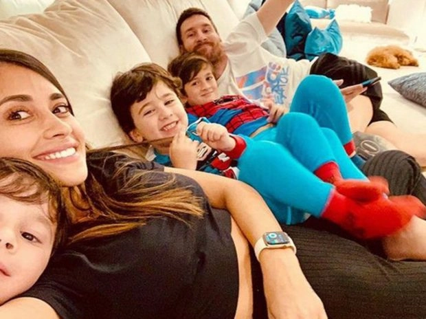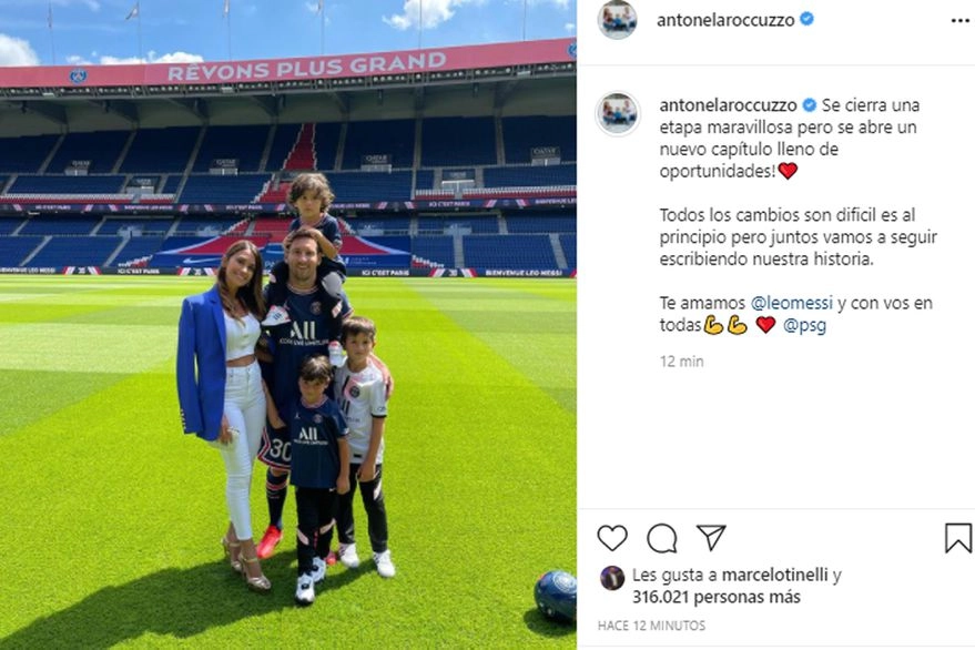 Tras la conferencia de prensa, la esposa del futbolista filmó para sus redes sociales un picadito de Messi con Thiago, Mateo y Ciro en el estadio del París Saint-Germain. Además, compartió una postal familiar desde la cancha y sumó una tierna dedicatoria.