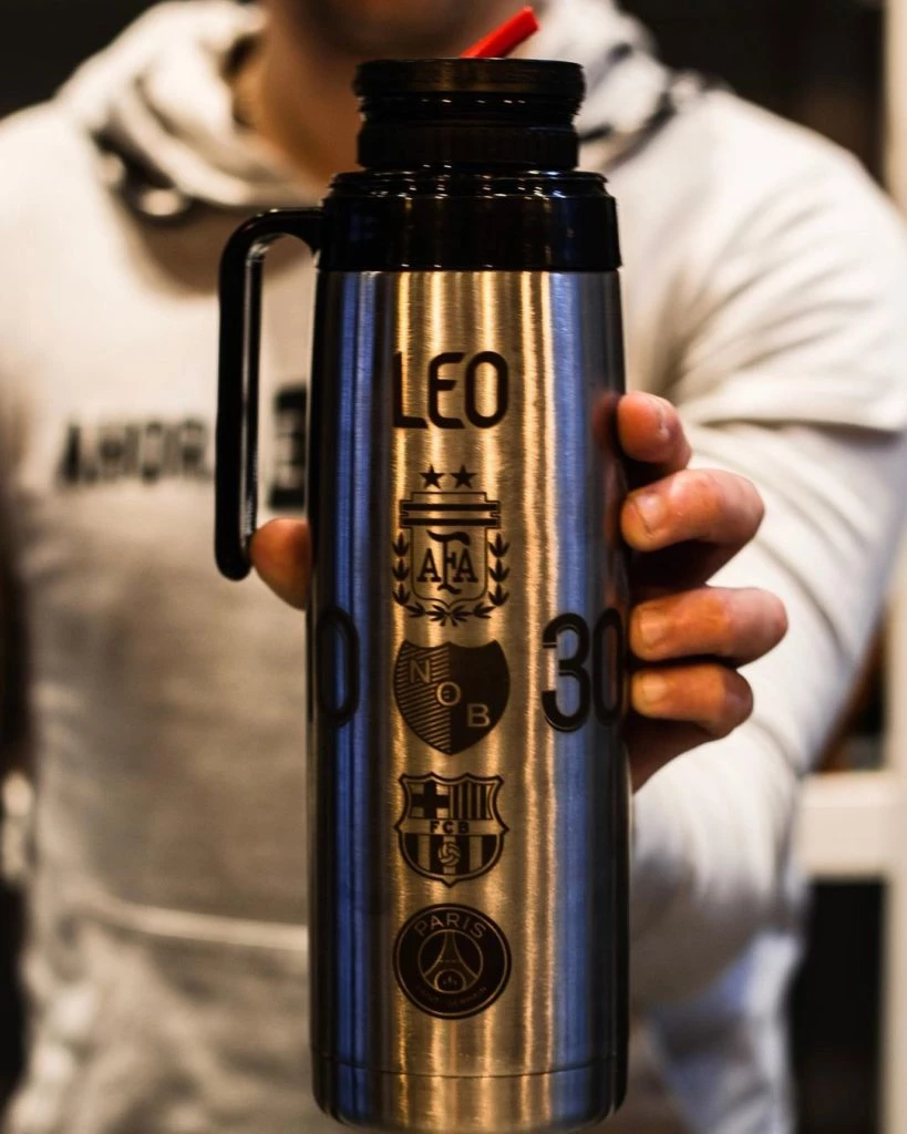 “No, con Leo no hablamos pero él eligió el diseño del termo y del mate. En el termo tiene los escudos de Barcelona, de Newell´s, de la AFA y de PSG y en el mate tiene los nombres de Antonella y de los tres hijos. Ella nos enviaba los audios con lo que él quería y así lo fuimos haciendo”, relató el fabricante sobre el pedido que le cambiaría la vida, ya que a partir de entonces cientos de personas quieren comprar su mate en el mismo lugar que el diez.