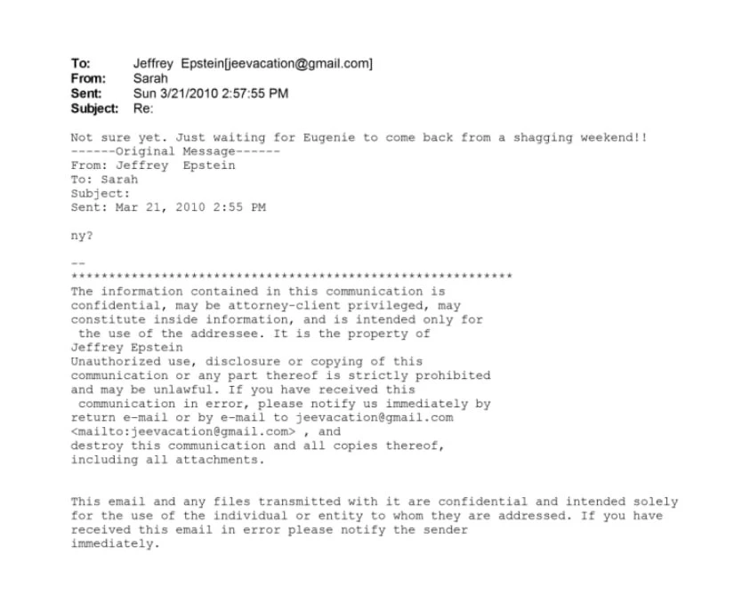 En sus mensajes, no se guarda elogios y lo llama "mi querido, espectacular y especial amigo Jeffrey". Incluso llega a decirle que es una "leyenda" y que se siente "muy orgullosa" de él. Además, en un mail fechado en 2010 –y muy comentado en las redes– ella se refiere a su hija de 19 años de una extraña manera: dijo que estaba esperando que la princesa Eugenia "regresara de un fin de semana de sexo".