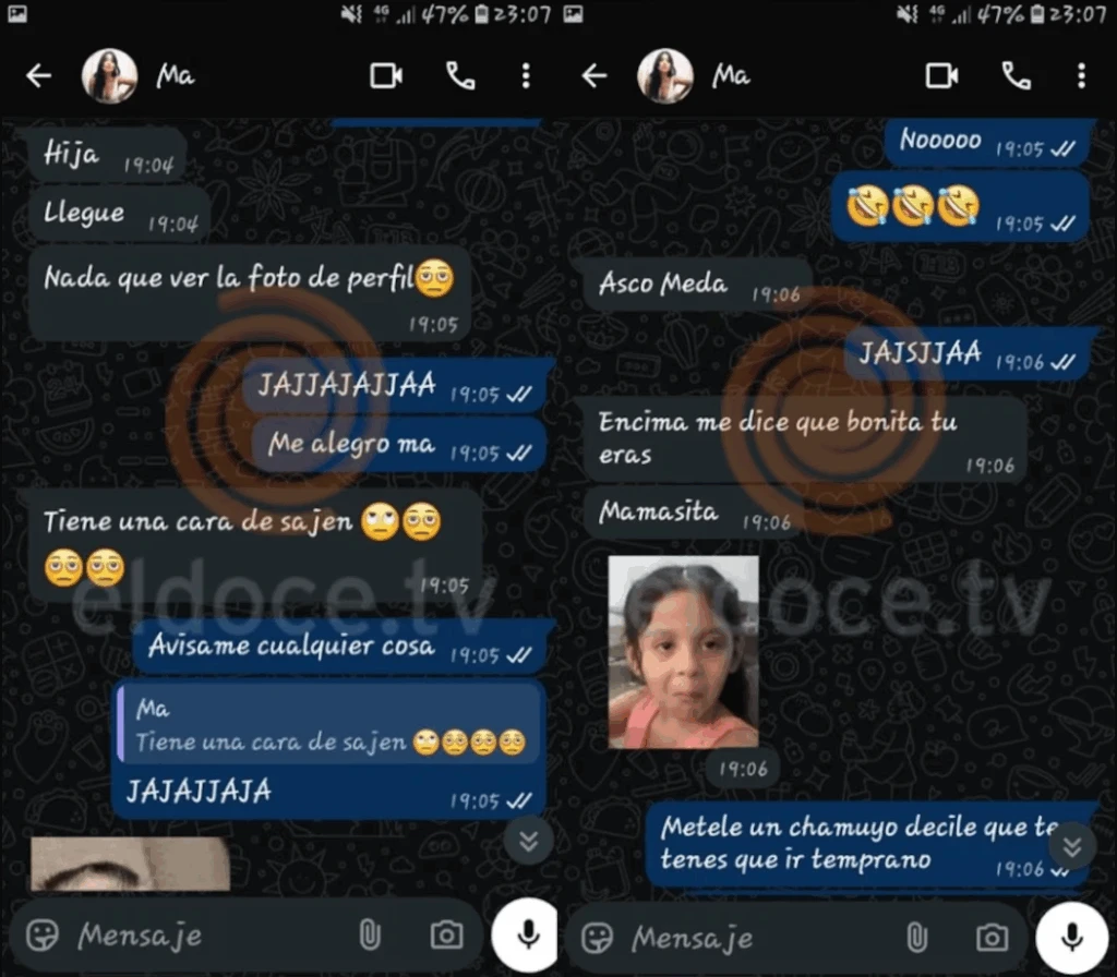 Los últimos intercambios fueron con su hija. Tania le contó que estaba cenando en un carro de la zona junto al hombre y un amigo de él. Minutos después, alrededor de las 20.20, escribió otro mensaje que hoy cobra un peso decisivo: “Hija se está poniendo denso que me vaya más tarde así que coman ustedes… yo si veo algo raro te aviso”.