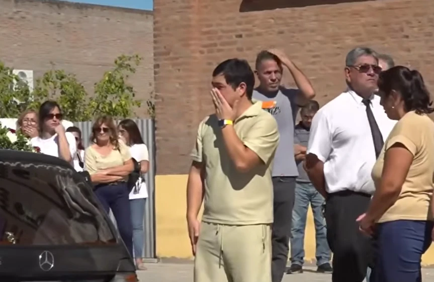 Frente a la iglesia local, el cortejo se detuvo para el responso. Fue allí donde el dolor se volvió físico. Hugo Leandro, vestido con una remera verde y bermudas, recibió abrazos que intentaban, sin éxito, recomponerlo.