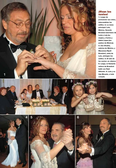 La primera declaración llegó en una cena. "Me sorprendió. De pronto, de modo muy romántico, Luis me dijo… lo que hay que decir en esos casos. Me quedé en silencio unos minutos, pero le dije que sí", contó Mónica. Desde esa noche, no se separaron más. Tuvieron seis años de convivencia antes de levantar la libreta matrimonial.