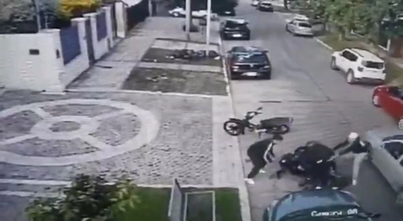 En el video de las cámaras de seguridad de la calle donde sucedió el hecho se puede ver como dos motochorros se interpusieron en el camino del famoso artista y, luego de un forcejeo, se llevaron su moto.