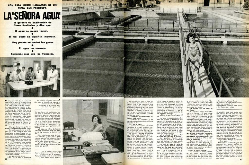 Ya en 1975, cuando la doctora Haydé Armándola de Paolillo se desempeñaba como gerente de Explotación de Obras Sanitarias, el acceso al agua potable era un problema. La entrevista a la especialista comenzaba haciendo alusión al mal sabor del agua que llegaba a los hogares a través de la red pública. "Nuestra tarea más importante es que el agua sea purificada de tal manera que no contenga bacterias ni virus que provoquen enfermedades en la población", declaraba Armándola, que fue la primera mujer en ocupar ese cargo.