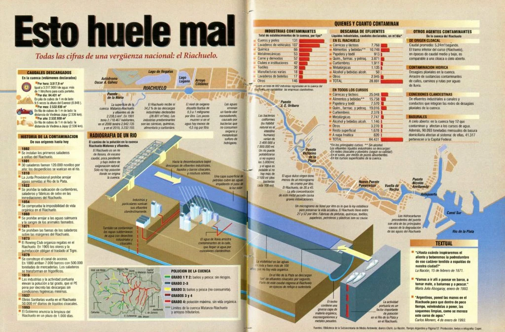En 1995, y ante señales de alarma por la contaminación, GENTE mostraba en una infografía cómo estaba afectada la cuenca Matanza-Riachuelo y hacía un ránking de las industrias más contaminantes alrededor del río.