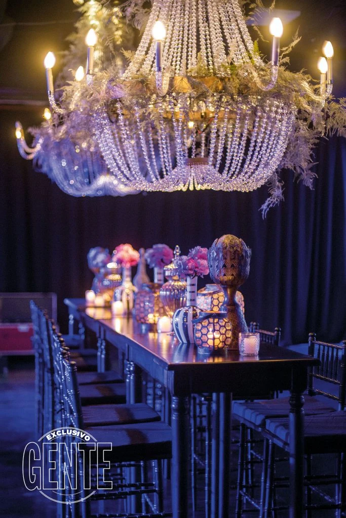 Desde la entrada con la blue carpet se hizo honor al dress code gris, plata y azul. Se armaron mesas altas con banquetas Tiffany, mesas cafetín con sillas Fénix de cristal (Crystal Rental) y livings con alfombras persas (Costa Rental), entre ellos uno especial en tonos rosados que compartieron Mirtha, Susana y Pinky. La gala estuvo iluminada con ocho arañas imperio de cristal intervenidas con helechos (Mauricio Lucic) y más de un centenar de velas.