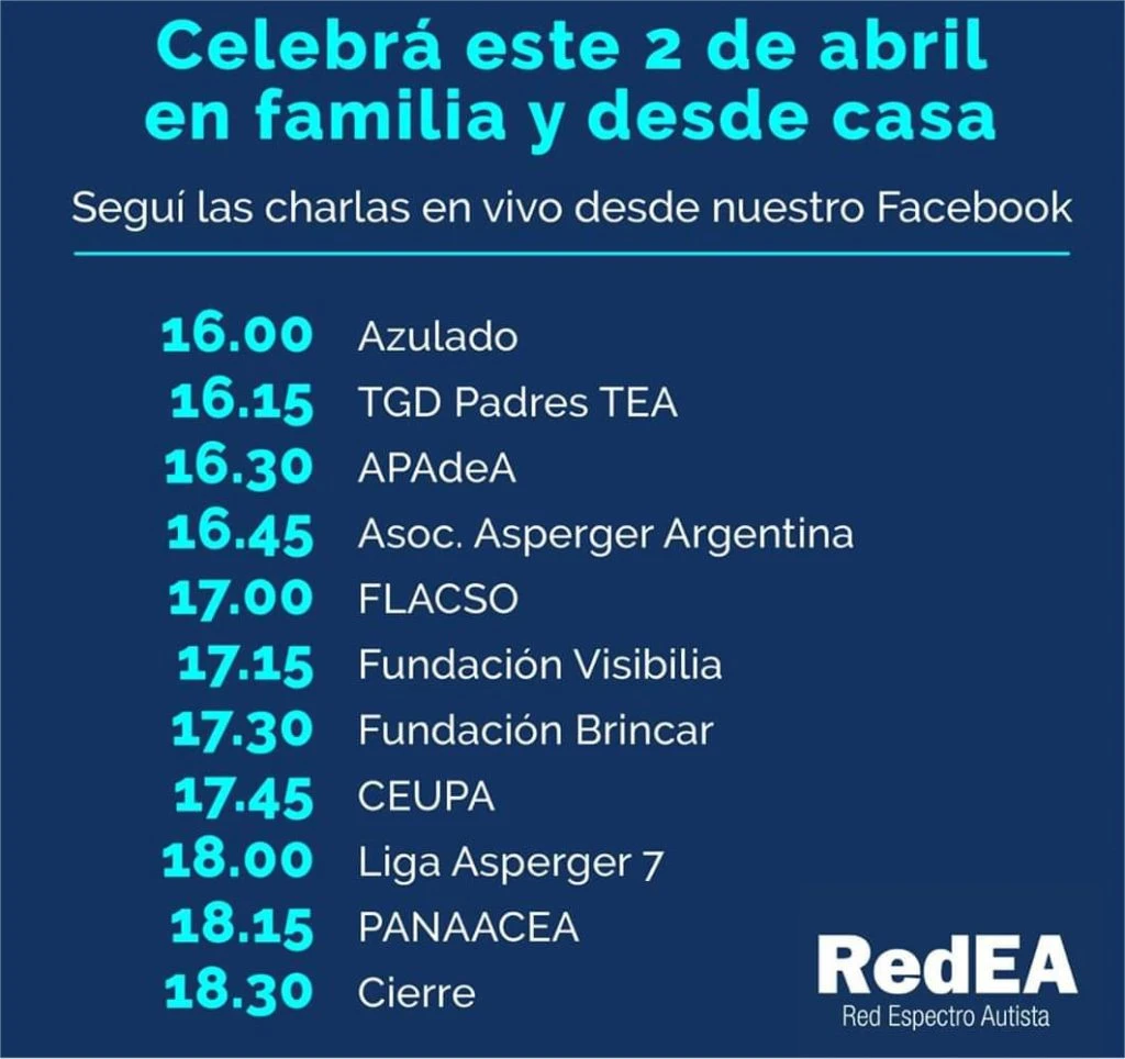 Redea, que agrupa a diferentes organizaciones ligadas al autismo transmitirá una serie de presentaciones en su canal de Facebook. TGD Padres TEA tiene prevista una charla virtual, también a través de sus redes sociales que será a las 18:30. Y NatGeo Kids lanza hoy un adelanto de la nueva temporada de Pablo, la historia de un niño con TEA. Algo valioso de esta producción es que ayudó a grandes y chicos a conocer más sobre los desafíos, las ideas y los sueños de quienes tienen autismo.