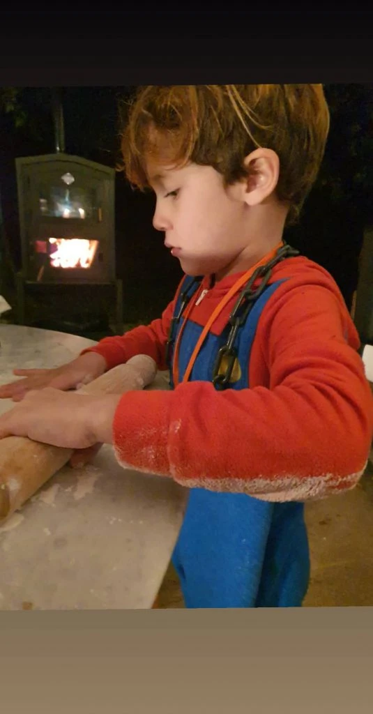 El actor, que está en la dulce espera junto a la actriz, tal cómo ella misma lo anunció con un posteo en su cuenta de Instagram en el que mostró su pancita, primero subió una foto del niño con el palo de amasar.