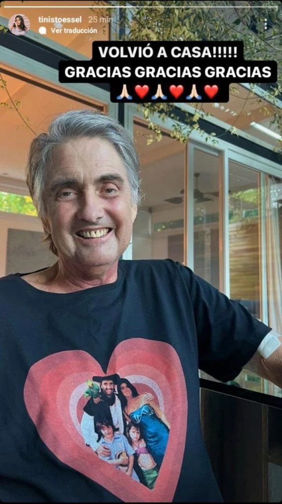 "Gracias a todos los profesionales del Sanatorio Trinidad Palermo! Me acaban de regalar una segunda oportunidad! Eternamente agradecido. A mi familia sin ustedes no lo hubiese logrado. Gracias", expresó el padre de Tini a través de su cuenta de Twitter, acompañado de una foto donde se ve al productor rumbo a su casa.