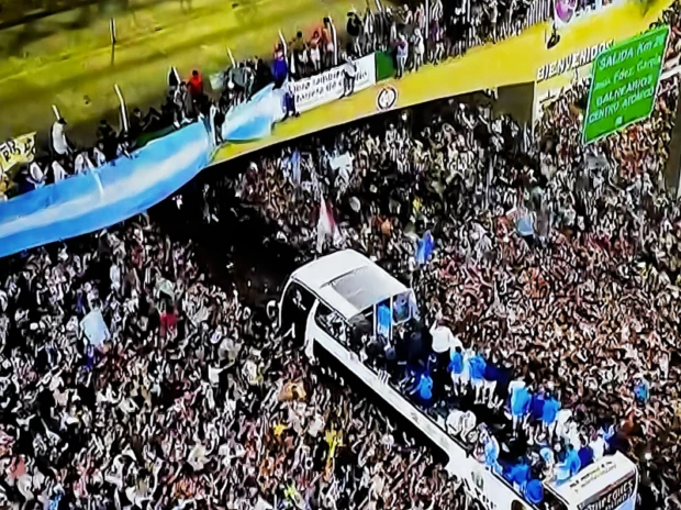 El micro descapotable de la Selección Argentina inició a las 11:30 su esperado recorrido por Buenos Aires, en principio hacia la autopista 25 de Mayo y 9 de Julio. pero con el correr del tiempo la AFA confirmó que se cambió el recorrido por la gran cantidad de hinchas que se concentran en diferentes puntos desde temprano a la mañana.