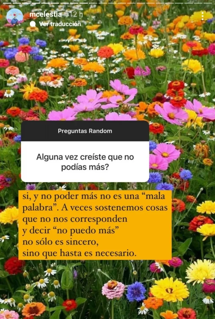 El motivo original fue que uno de sus seguidores quiso indagar acerca de si alguna vez ella “creyó que no podía más”. En respuesta, Celeste fue contundente y lanzó unas palabras que tal vez sus seguidores no esperaban.