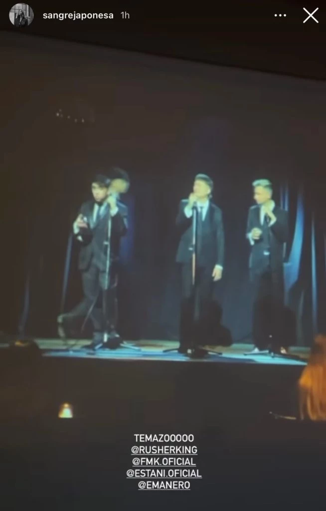 Hubo una historia especial, en la que solo se dedicó a enfocar a Rusherking, durante todo el lapso de la historia de Instagram, se la vio super compenetrada a la actriz grabando como se veía el cantante con su traje interpretando sus lineas en la canción.