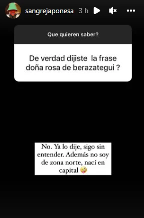 Ante la consulta sobre la famosa frase que habría dicho, la China en ese entonces, se refirió a esto por primera vez y desmintió por completo haber utilizado esa expresión. "No dije esa frase. Sigo sin entender. Además no soy de zona norte, nací en capital", expresó.