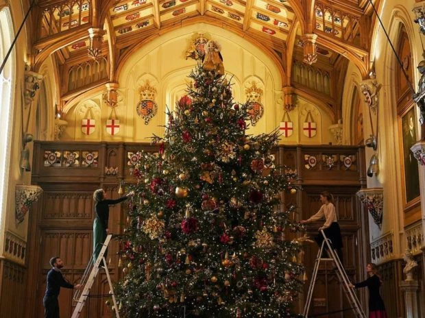 Si bien Isabel II no planea pasar las fiestas en Windsor, no se han hecho cambios en los planes de la decoración que tenían planeada en el castillo. Desde la cuenta oficial de instagram de The Royal Collection Trust compartieron con alegría los primeros interiorismos navideños. Ya han instalado un árbol abeto de gran tamaño, 6 metros, en el St. George Hall. Allí el príncipe Harry y Meghan Markle celebraron la recepción de su boda y presentaron a la sociedad a su hijo Archie.