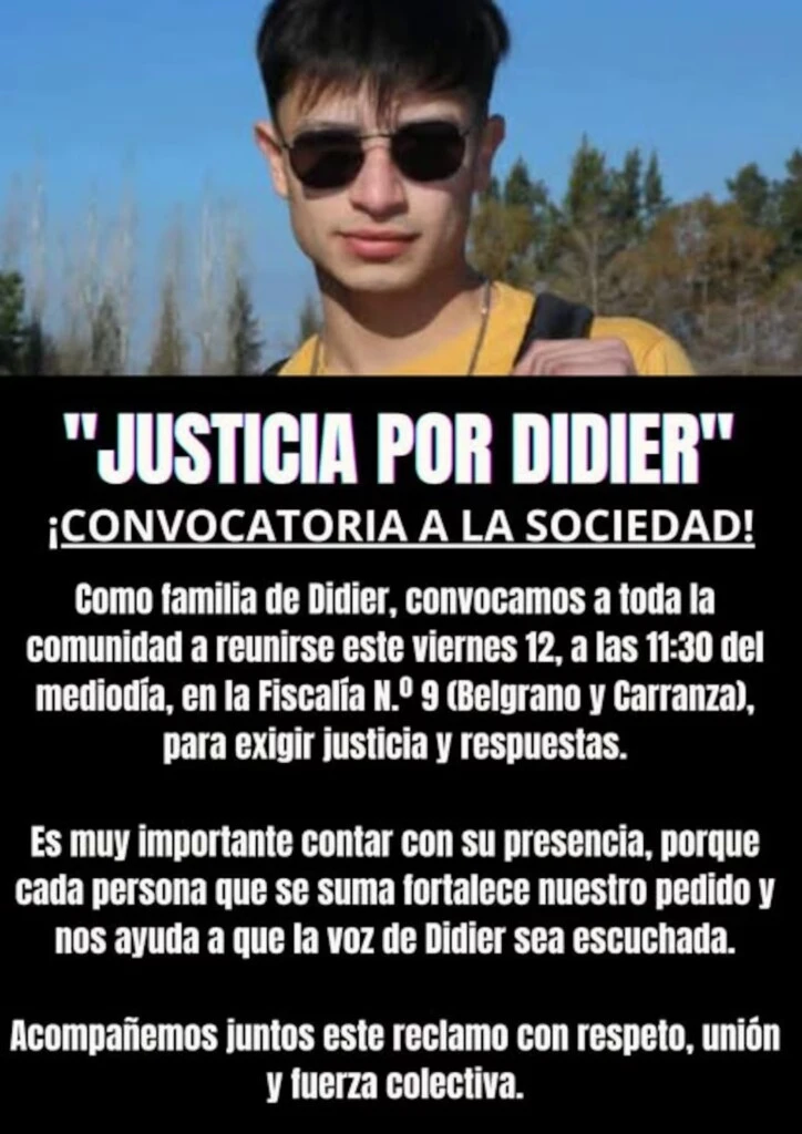 La familia de Didier quedó devastada y sostiene que el joven no presentaba ningún golpe cuando ingresó al hospital, por lo que exigen saber qué ocurrió en la hora en la que estuvo desaparecido. Su hermana Melany relató que, cuando lo vio por la mañana, quedó impactada por su estado: contó que su abuela fue la primera en advertir que “estaba recontra golpeado” y que, cuando finalmente pudieron verlo después de su muerte, solo les permitieron observarle el rostro, que —según describió— “estaba terrible”, con la oreja violeta y el pómulo muy inflamado.