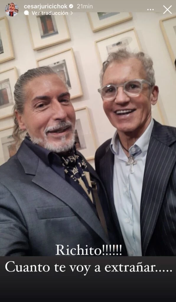 El diseñador de indumentaria César Juricich posteó una fotografía junto al representante y escribió: "Richito... Cuánto te voy a extrañar".
