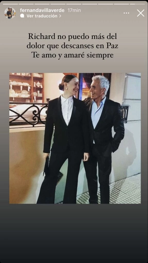 "Richard no puedo más del dolor. Que descanses en paz. Te amo y amaré siempre", escribió la Fernanda Villaverde junto a una fotografía de ambos.