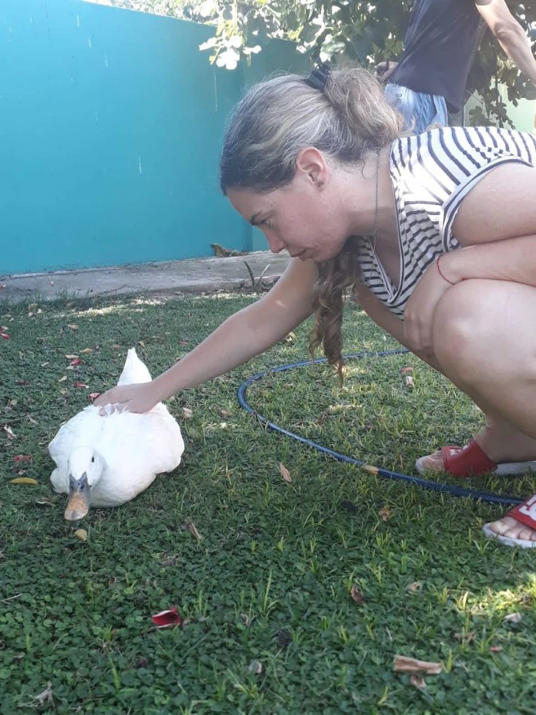Patricia es una pata de ocho años que tuvo la suerte de cruzarse en el camino de Sandra Sette, quien le salvó la vida y le dio un lugar privilegiado en su hogar. "Hace ocho años yo vivía con mis hermanos y mi mamá en Turdera, localidad de Zona Sur. Todos los días me tomaba el tren para ir a trabajar a Capital y pasaba por un Pet Shop que estaba cerca de la estación. Ahí solían vender peces y canarios, pero un día pasé y vi que había un pato en una caja. Entré y le pregunté al vendedor por qué lo tenía ahí, y me dijo que se lo había llevado un proveedor que siempre le entregaba pajaritos. Me contó que hay gente que compra patos chiquitos (como era ella en ese entonces) porque son más baratos que los grandes. Entonces los engordan y después los matan para comer. Cuando escuché eso le dije: 'Me lo llevo'", cuenta su dueña.