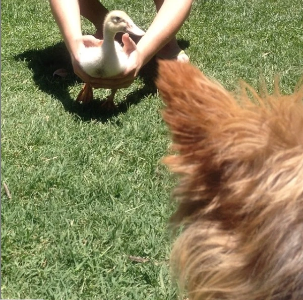 Desde el primer día Patricia convive con animales. Hoy comparte el parque de la casa de Sandra con seis perros: Ninón, Bonita, Iara, Donna, Rumba y Culín, el único macho. Y también convivió con Manteca, el conejo de la familia que falleció el año pasado. "Al principio tuvimos que hacer un periodo de adaptación con ellos porque no sabíamos qué onda. Primero la teníamos en otro sector del jardín. Después los empezamos a juntar, ellos la olían y de a poco se fueron adaptando. Ahora la pata es la dueña del jardín. Es un perro más. Podríamos decir que es la líder de la manada. ¡Hasta los vecinos la conocen!", señala Sandra.